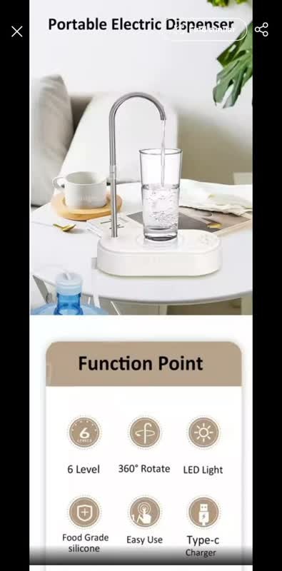 دکمه، آب را از گالن خارج میکند. این دستگاه از فناوری بیصدا بهره میبرد